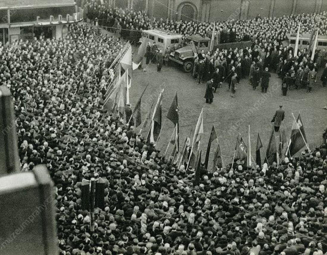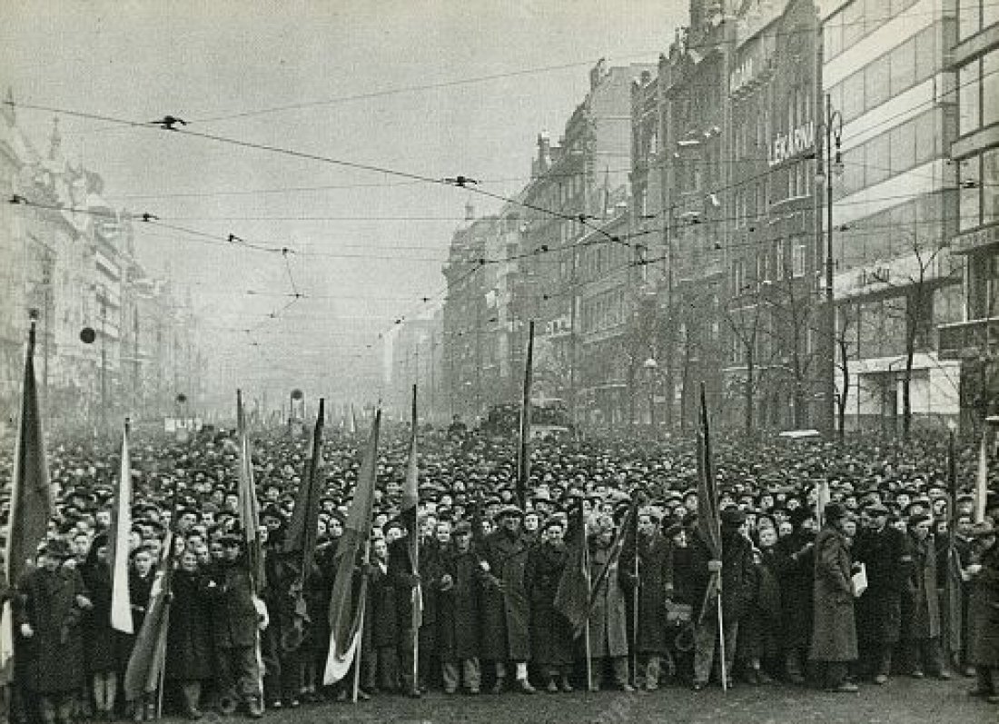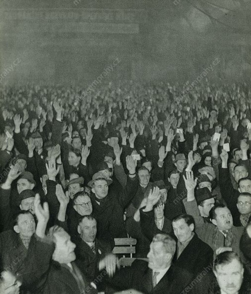 The communist repressions were now aimed against the People’s Party as well. Under threat of arresting the ministers who submitted resignations, the president was urged to accept the resignation of the government. At 12 o’clock, the one-hour general strike began which was organised by trade unions and works committees under the patronage of the Communist Party. A procession formed by tens of thousands of workers to support Klement Gottwald marched through the centre of Prague. A dispute culminated among the social democrats because of diverging opinions on the support of the communist coup. Eventually, the communists occupied their secretariat and Lidový dům (People’s House), and the party accepted participation in the future government under pressure.