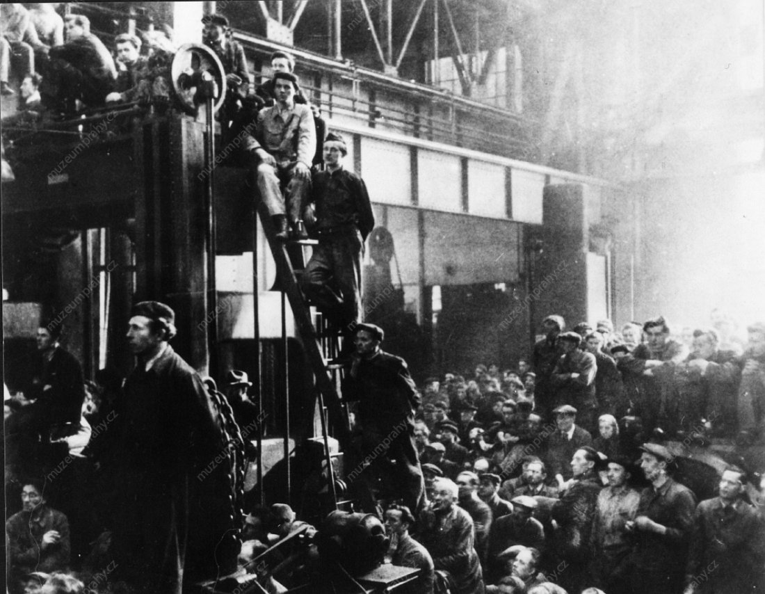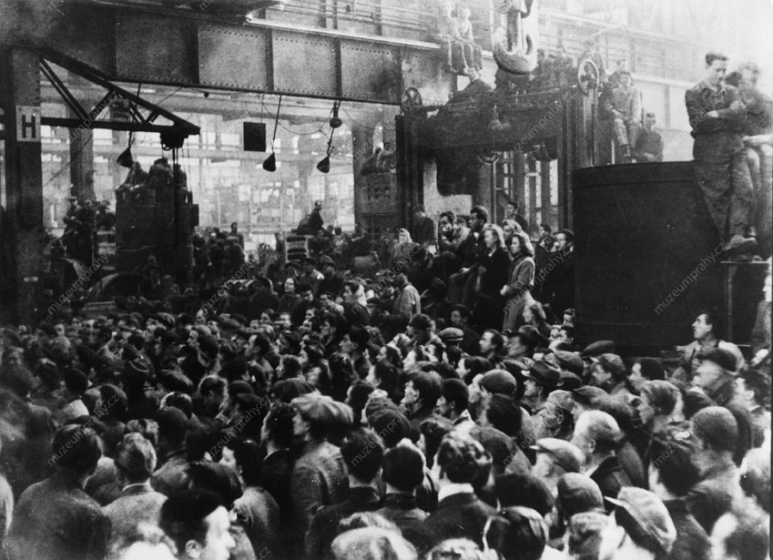 Workers of ČKD Company in Vysočany during the general strike on 24 February 1948, MMP H 198 580 a MMP H 198 579.