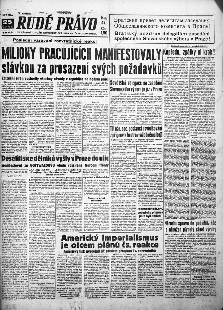 Workers are informed about the resolution of the national congress of works committees at the Tatra Smíchov national enterprise, MMP HNS 000 264/060; Current political events and responses to them in Rudé právo newspaper. 23 February 1948, MMP HNS 000 921/061.