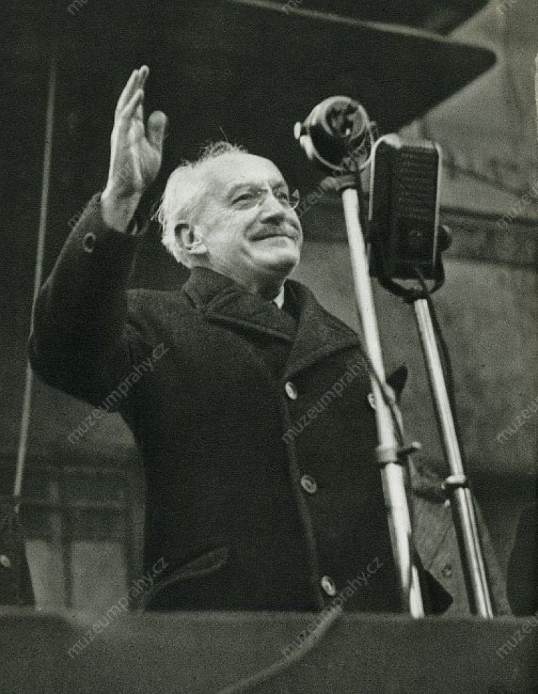 Further events soon followed the crucial six days. On 27 February, the president accepted the new government members who were sworn in. On 11 March, a day after the still unclear death of Jan Masaryk, the newly composed communist government was authorised. On 9 May, a new constitution was adopted which anchored the People’s Democratic Republic as a new political system. On 30 May, there were elections for the National Assembly which enabled to vote in only the candidates of the National Front which was fully controlled by the Communist Party of Czechoslovakia. Klement Gottwald achieved the climax of his political career when President Edvard Beneš abdicated for health reasons on 2 June. Twelve days later, who else but the current Prime Minister Klement Gottwald was elected to replace him.