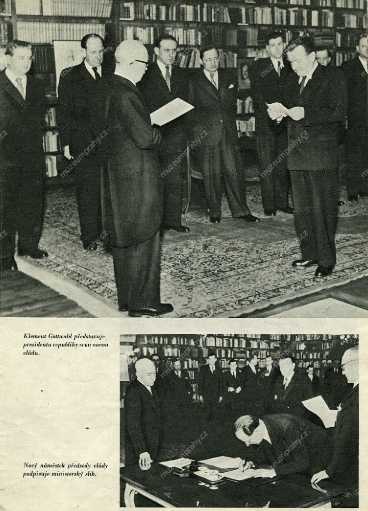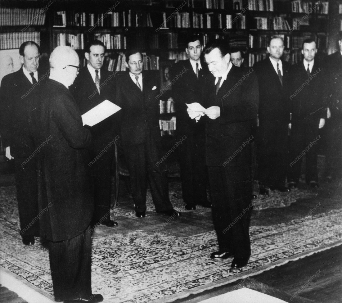 The newly composed Gottwald’s government is being sworn in by President E. Beneš. 27 February 1948, MMP H 198 585/001.