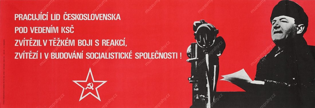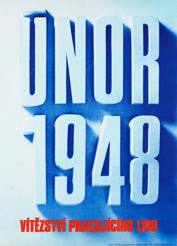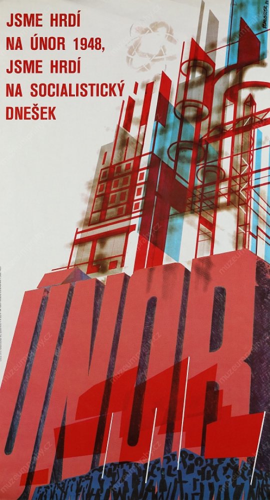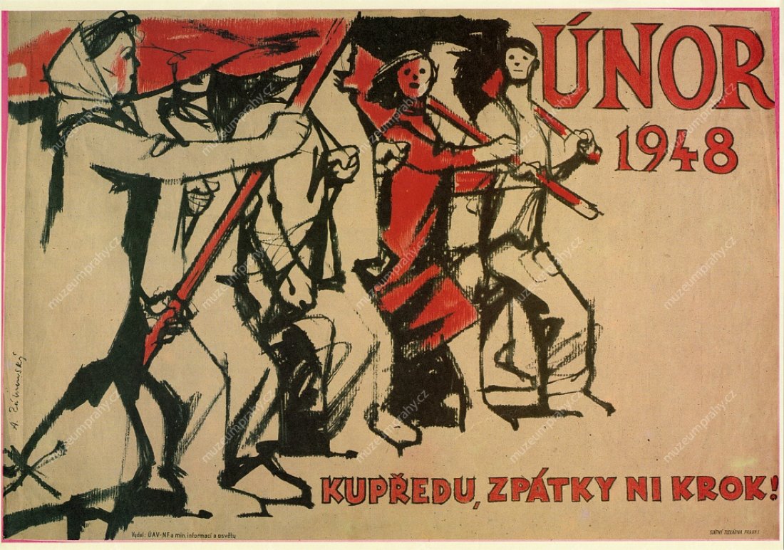 This wording, which so aptly characterised the last round of the struggle for power in Czechoslovakia at the end of February 1948, appeared on a propaganda poster of the artist Jiří Kodejš referring to the 25th anniversary of 'Victorious February'. It was one of the cardinal moments of Czechoslovakian history that adumbrated the entire second half of the 20th century. The circumstances of the stimulation of the coup in Czechoslovakia must be understood in the context of after-war political changes, as a consequence of the inclusion of Czechoslovakia in the influential sphere of the contemporary Soviet Union and the enormous growth of the membership base of the Communist Party of Czechoslovakia. The populist programme, supported by social agitations and pro-Soviet post-war pathos, brought a swift first success after the national committee elections in May 1946 where the communists achieved the highest representation in the newly elected local national committees (communists – 108 members, national socialists – 92, social democrats – 89, People's Party – 54, without party affiliation – 23).