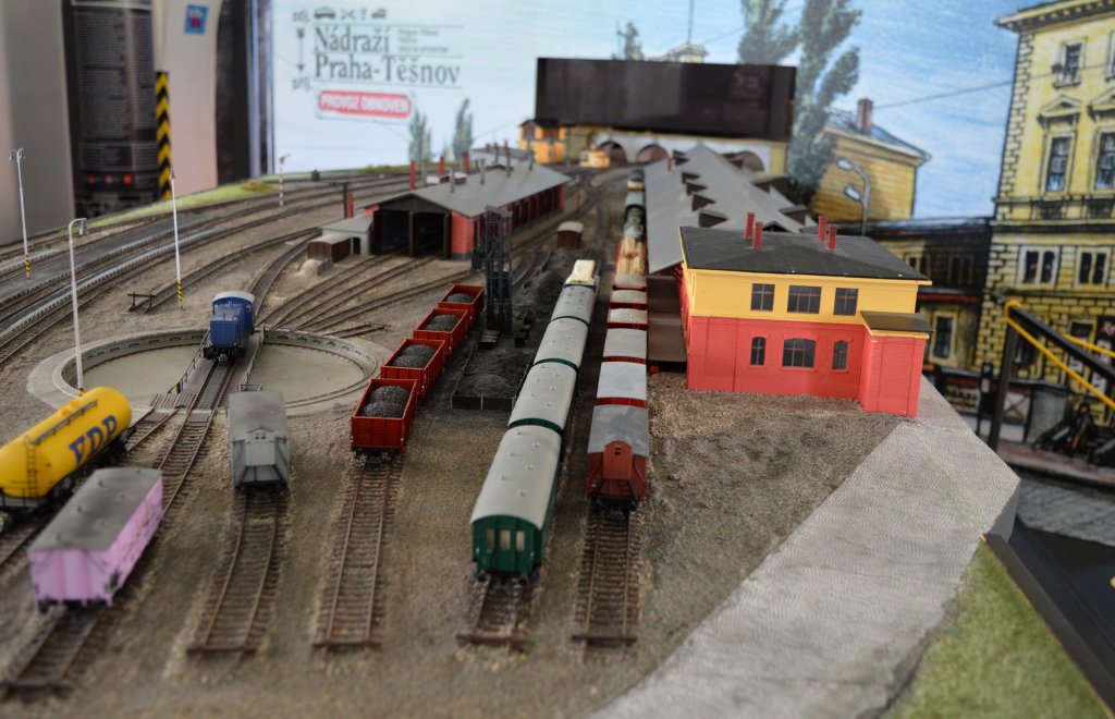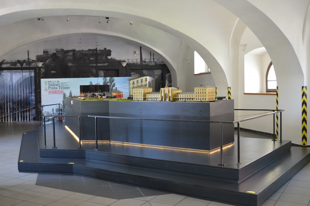 Model budovy nádraží Praha-Těšnov, zahrnující i pozoruhodnou sochařskou výzdobu, vznikl dle dochovaných technických výkresů metodou 3D tisku v měřítku 1 : 87 ve velikosti H0. Součástí modelu byl areál lokomotivního depa, zobrazující místa pro zbrojení lokomotiv vodou a zejména uhlím pomocí zauhlovacího jeřábu, jejich údržbu v odkalovací jámě, dvojkolejnou průjezdnou remízu, funkční točnu, stavědlo, vodárnu a nákladní skladiště. Na digitálně řízeném kolejišti byly v provozu repliky dobových vlakových souprav.