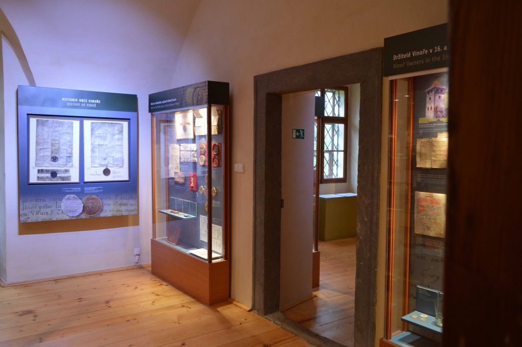 Vinoř je staré historické sídlo, první písemná zmínka o vsi pochází již z roku 1088, kdy král Vratislav II. daroval Vinoř (UINAR) Vyšehradské kapitule. Expozice představuje tyto první písemné zmínky o Vinoři, nejstarší držitele Vinoře, kopie významných listin, středověká pečetidla, repliky dobových mincí či repliky nalezených kachlí z 15. století. Za pozornost stojí vystavované archeologické nálezy z raně středověkého hradiště v bývalé zámecké oboře, pravěká sídla a hroby, nebo zásobnice, největší nádoba z bohatého kostrového hrobu v Bohdanečské ulici – z bylanské kultury ze starší doby železné.