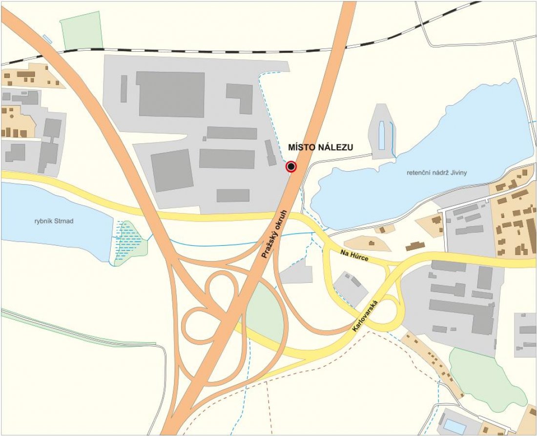 Obr. 1: Místo nálezu z roku 1999 v místech dnešního Pražského okruhu severně od ulice
