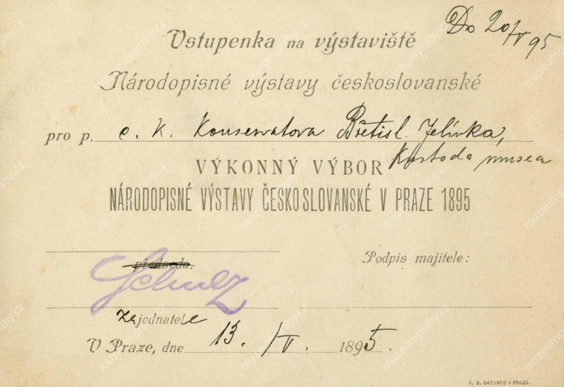 Josef Břetislav Jelínek (1843–1926), první kustod a od roku 1895 do roku 1913 první ředitel městského musea Pražského, MMP H 59 147/1 a H 237 410.