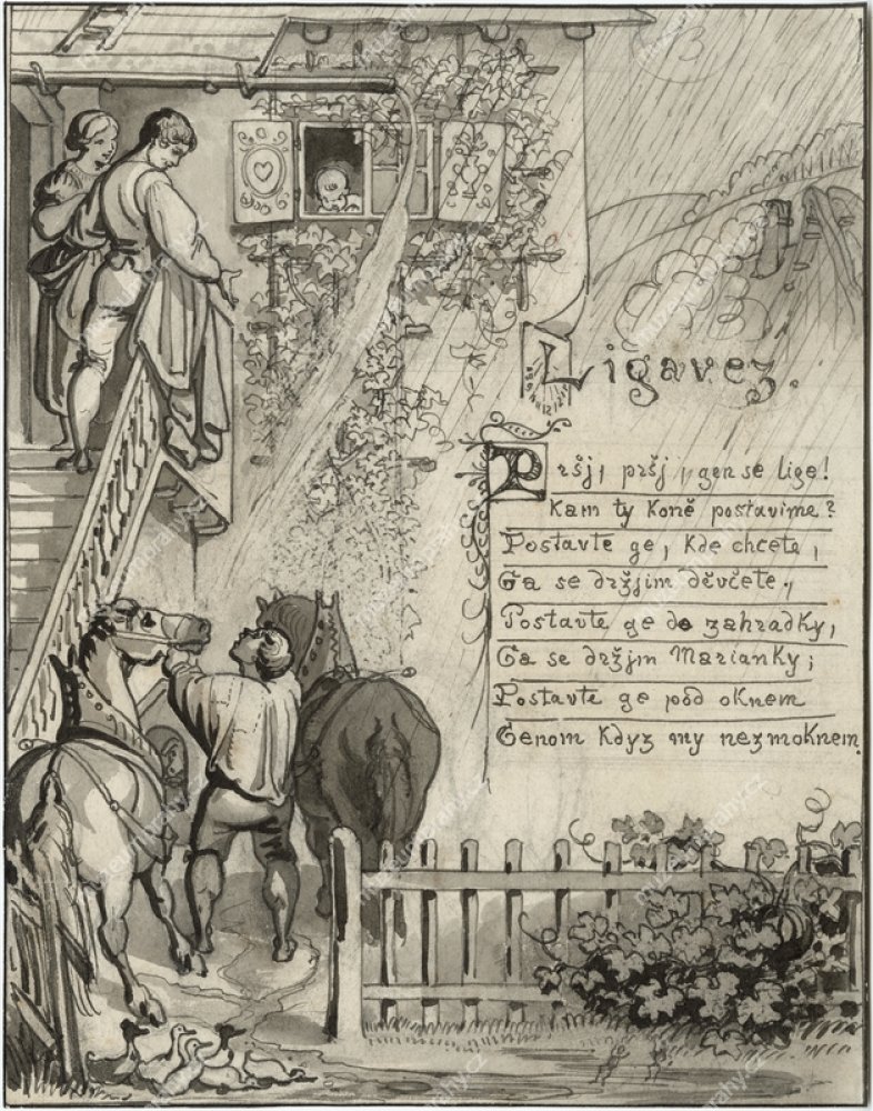 V souboru původních Mánesových děl zakoupených v roce 1881 měly významné místo ilustrace k Rukopisům královédvorskému a zelenohorskému, MMP H 62-66.