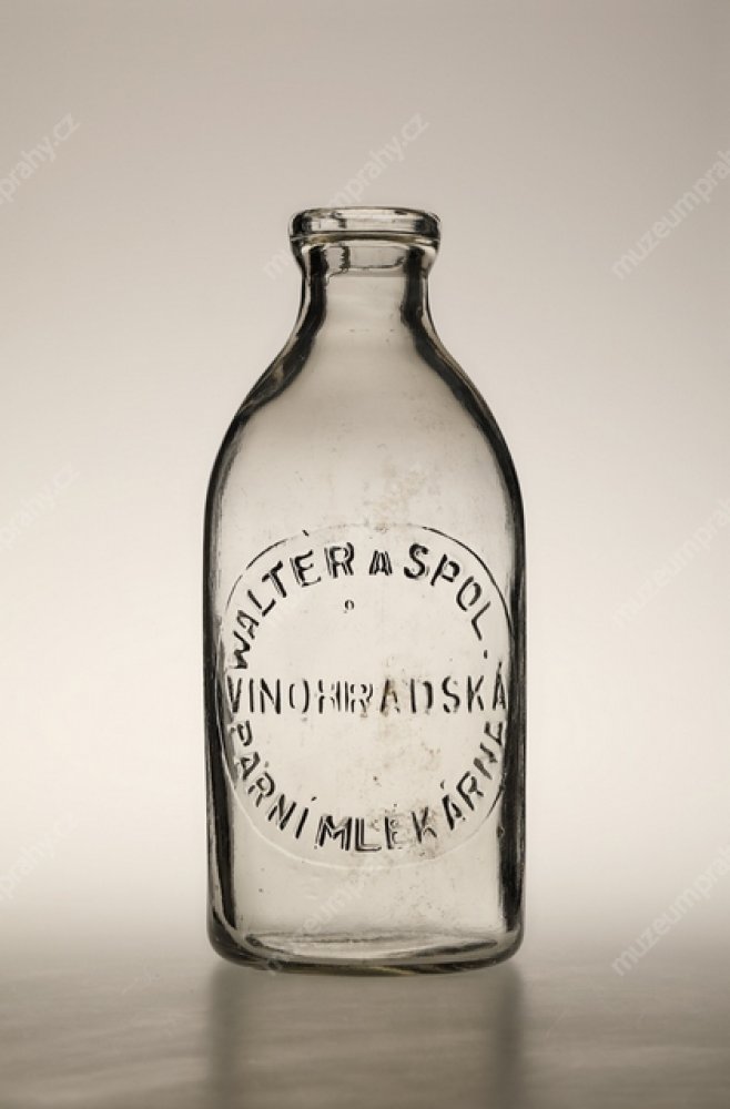 Skleněný obal byl na počátku rozvoje pražských mlékáren využíván v omezené míře, a to jen pro potřeby kondenzovaného a kojeneckého mléka. Běžné konzumní mléko v láhvích představovalo jen zlomek z celkové produkce, která se ke spotřebitelům dostávala i nadále v konvích. Změnu, zejména ve větších městech, přineslo až rozšíření nového typu tzv. reformních láhví na přelomu 19. a 20. století – doposud používané nádoby s patentním porcelánovým uzávěrem nahradily silnostěnné lisované láhve s hrdlem uzpůsobeným pro umístění lepenkového parafínového kruhového uzávěru. Tento typ obalového skla se v různých tvarových variantách používal v českých zemích až do 70. let 20. století. Přesto ještě v polovině 30. let 20. století tvořil podíl distribuce mléka ve skleněných láhvích jen okolo tří až čtyř procent. Výraznější přechod k láhvím přineslo až vládní nařízení o povinné pasteraci konzumního mléka z roku 1934, jež měla mimo jiné zamezit šíření tuberkulózy.