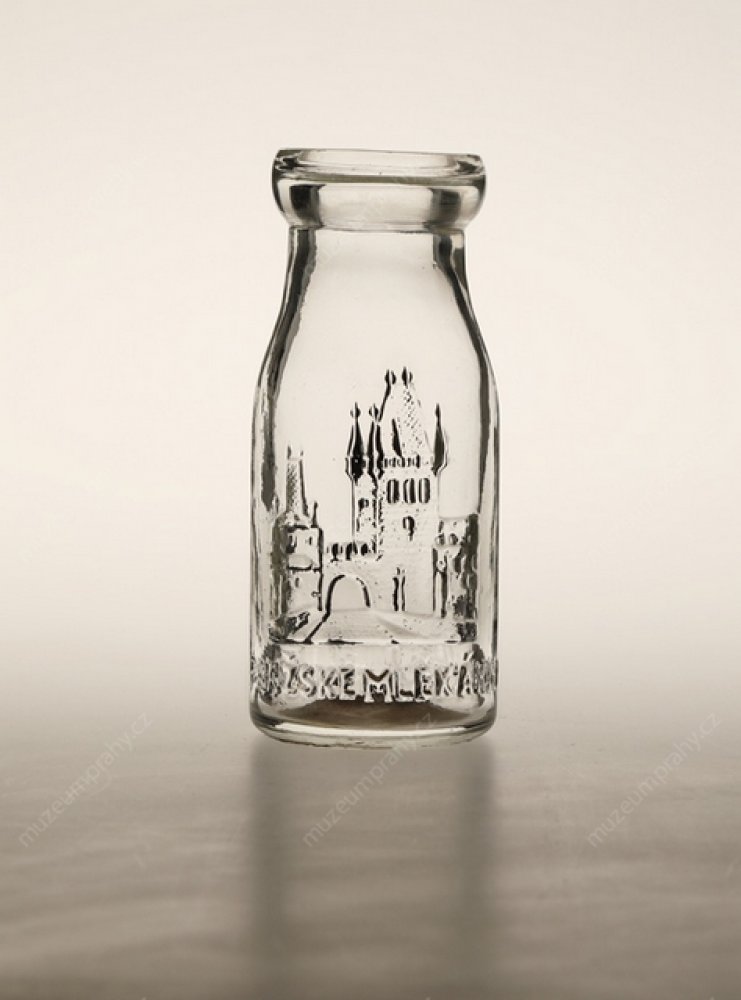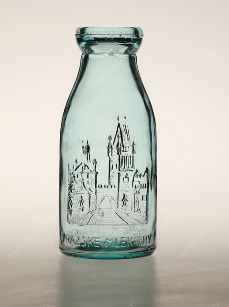 Pozoruhodný typ lisovaného obalového skla představují láhve Pražských mlékáren, zdobené charakteristickým reliéfním vyobrazením Malostranských mosteckých věží. Ve 30. letech 20. století se tento symbol stal ochrannou obchodní značkou volného syndikátu osmi pražských soukromých podniků a v období 1948–1953 jej bez výraznější obměny převzal národní podnik Pražské mlékárny. Ve sbírkách Muzea hl. m. Prahy se k dnešnímu dni dochoval soubor jejich barevně a objemově rozlišených variant z období meziválečného i z let po roce 1948.