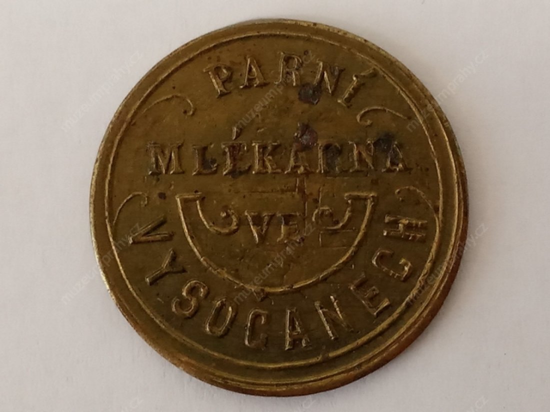 S prodejem mléčných výrobků souvisí i výdej účelových známek potvrzujících vyplacenou zálohu za poskytnutý obal. Tyto zálohové známky musel dotyčný příjemce vrátit současně s láhvemi, aby měl nárok na proplacení zálohy. V meziválečném období se obvykle razily známky mosazné, v nominální hodnotě od 20 haléřů až 2 korun, po roce 1948 se do oběhu dostávaly i známky bakelitové. Vlevo a uprostřed je umístěn avers a revers mosazné známky Vysočanské mlékárny z počátku 20. století, vpravo avers a revers známky vydané První českou akciovou parní mlékárnou (tj. Nuselskou) v Praze z téže doby. MMP H 021.500 a H 058.229/001.