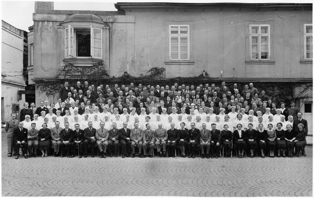 Pohled do výrobny Vysočanské mlékárny. Fotografie pořízena u příležitosti 50. výročí založení podniku v roce 1935, MMP H 320 464; Skupinová fotografie zaměstnanců Vysočanské mlékárny. Snímek pořízen u příležitosti 50. výročí založení podniku v roce 1935, MMP H 320 466.