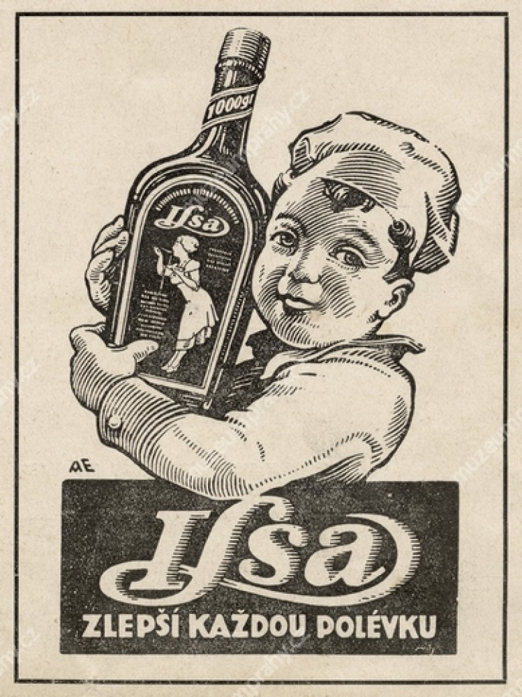 Reklama na polévkové koření Ilsa vyráběné Radlickou mlékárnou z odpadů mlékárenské výroby, tisk, MMP H 327 251.
