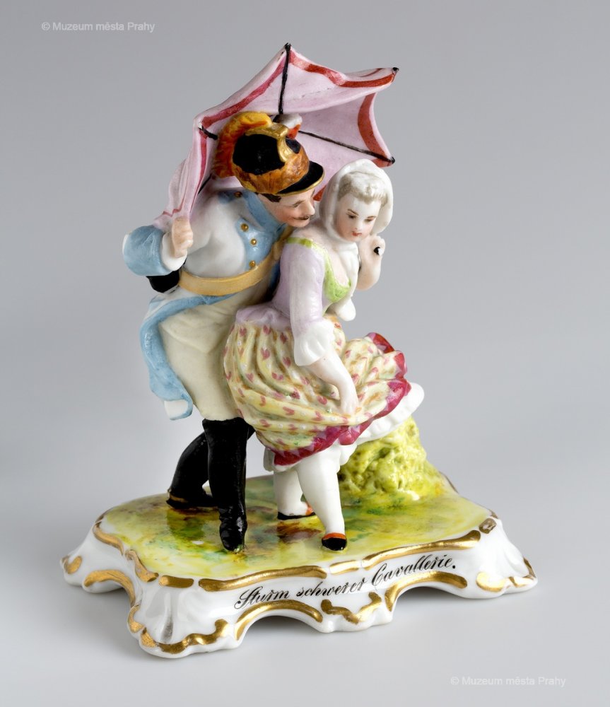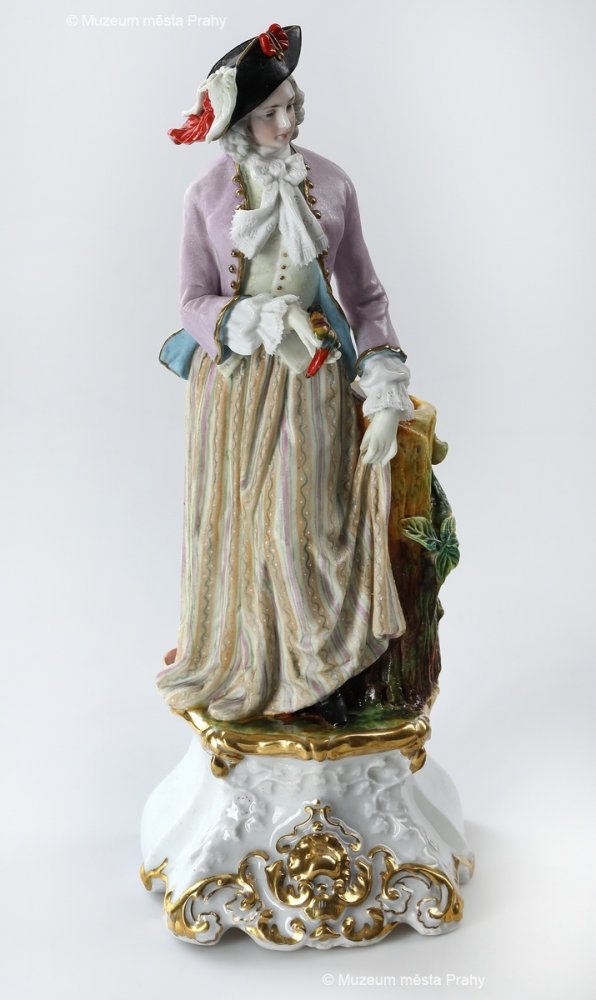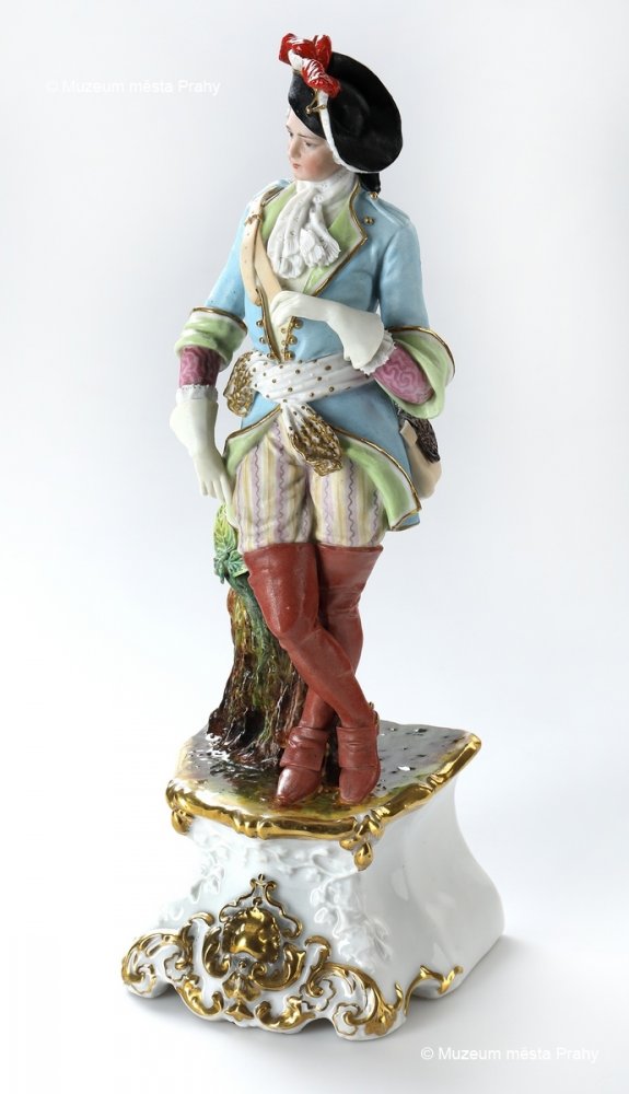 Kavalír, po 1852, malovaný biskvit, částečně glazovaný, zlacený, v. 30 cm, vyrobeno ve smíchovské porcelánce, neznačeno, sbírka MMP, inv. číslo H 014 246
