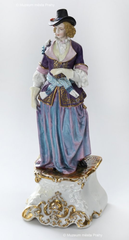 Dáma, po 1852, malovaný biskvit, částečně glazovaný, zlacený, v. 29 cm, vyrobeno ve smíchovské porcelánce, neznačeno, sbírka MMP, inv. číslo H 014 247