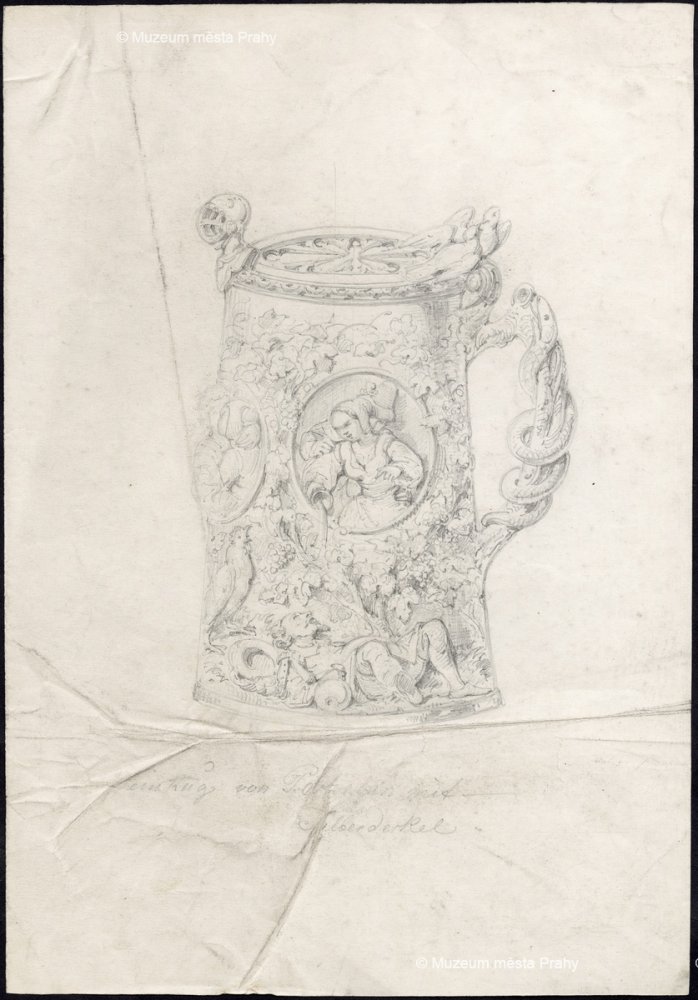 Ernst Popp (připsáno): Návrh porcelánové holby, po 1852, kresba tužkou na papíře, 31,1 × 21,6 cm, sbírka MMP, inv. číslo H 035 110