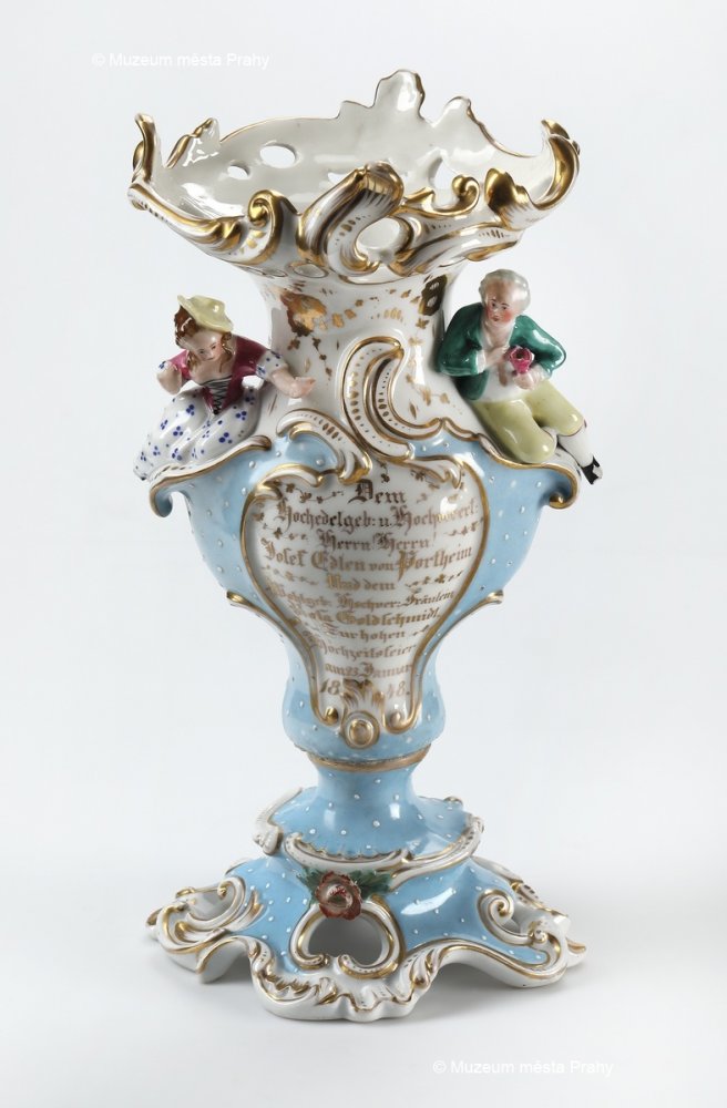 Ve sbírce porcelánu Muzea města Prahy se nacházejí některé předměty, které se vztahují k významným pražským rodinám. Váza na levé fotografii byla zhotovena ke svatbě Josefa Portheima s Rosou Goldschmidtovou. V čelním poli stojí zlatem vyvedené věnování novomanželům: Dem Hochadelbeb. u. Hochverort. Herrn! Herrn! Josef Edlen von Portheim und dem Wohlgeb. Hochver. Fräulein Rosa Goldschmidt. Zur hohen Hochzeitsfeier am 23 Januar 1848. Barokní vilu Portheimka pojmenovanou podle jejích dřívějších majitelů, která stojí nedaleko křižovatky Anděl na Smíchově a poblíž místa bývalé továrny na porcelán, dnes vlastní Městská část Praha 5 a využívá ji ke kulturním účelům.