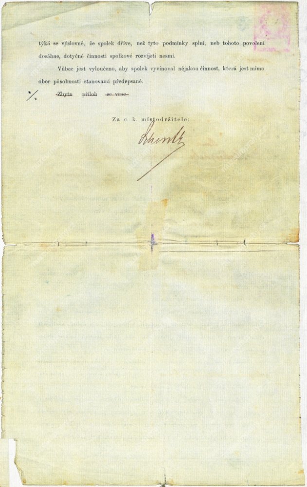 Místodržitelství povoluje, resp. nezapovídá založit spolek SK Břevnov, 4. srpna 1906, MMP H 327 239/005, 006.